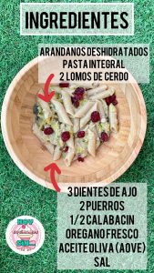 Un plato muy fácil de hacer. Es ideal para los más pequeños porque contiene pasta integral adornada con sabores intensos como el orégano fresco y además carne de lomo, que normalmente suele ser un poco dura, pero al triturarla conseguimos que quede perfecta para este plato. Los arándanos deshidratados al final le darán un toque especial y hará un contraste de sabores en este plato.